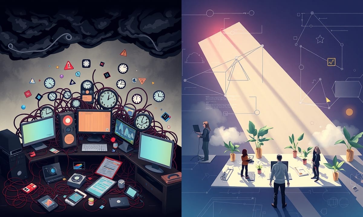 你知道嗎?每個月就這樣悄悄流走四十個小時,等於整整一週上班時間,在電腦和各種雲端之間蒸發。其實,那些原本足以好好想策略、替團隊點出方向,或用來琢磨新案子的黃金時段,全被數位雜務啃掉。有點可惜。